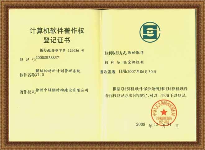 計(jì)算機(jī)軟件著作權(quán)登記證書