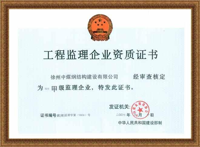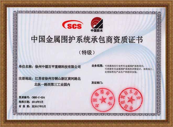 金屬維護(hù)系統(tǒng)承包商特級(jí)資質(zhì)證書
