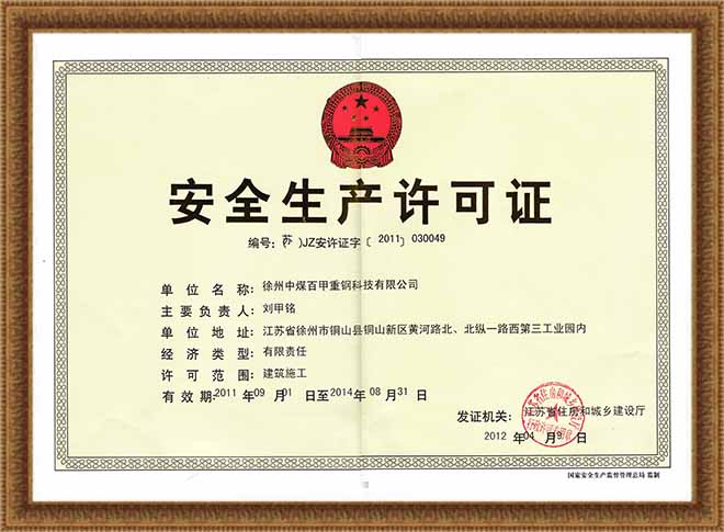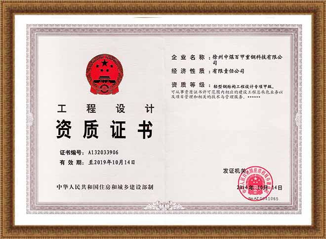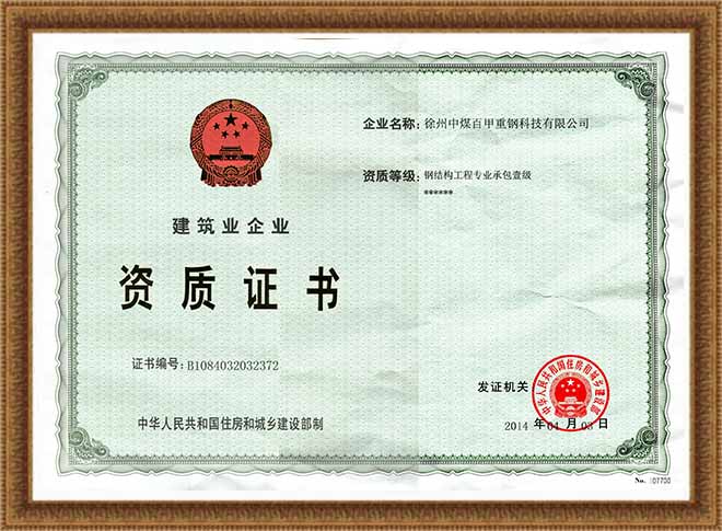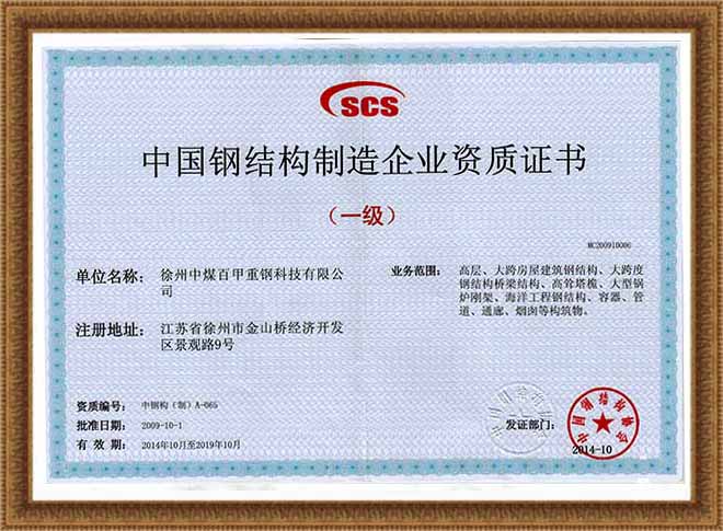 中國(guó)鋼結(jié)構(gòu)制造企業(yè)資質(zhì)證書 (一級(jí))