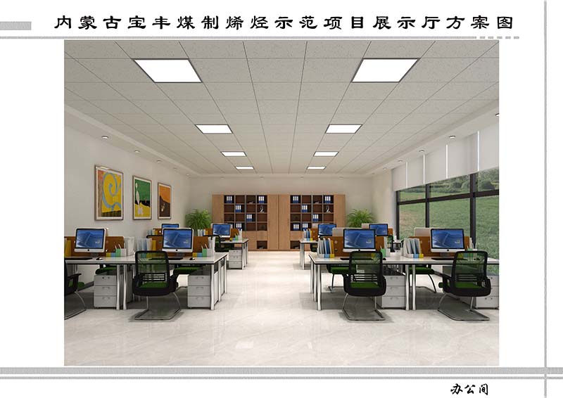 項目為寧夏寶豐能源集團在內蒙古烏審旗圖克鎮投資673億元人民幣占地面積9000畝建設4*100萬噸烯烴項目,是目前國內最大的以煤作為原料來生產甲醇、烯烴、聚乙烯的生產裝置。項目受到了國家和內蒙古自治區的高度重視,為了展示所有的工藝流程平面布置以及寶豐企業的文化。項目所在地須在工程舉行開工典禮前於9月20日前建設一個高檔的展示廳來接待國家和自治區等各級領導的現場參觀和考察。滿足開工典禮的需求。