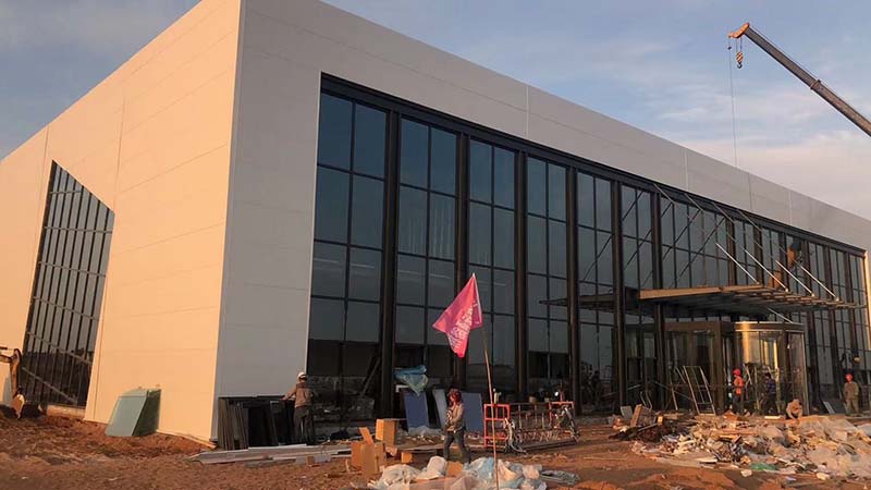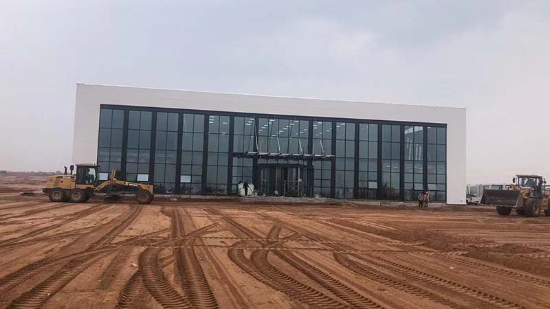 寧夏公司在中外建華設計院的配合下,於8月17日在短短4天的時間做出了整體方案圖及結構施工圖紙設計并通過了甲方的審核和認可并得到了一致的好評。這個項目要由四個專業隊伍來完成即土建基礎、鋼結構主體、外垟夾心板及幕墻、室內裝修、水電及智能投影功能。同時;要完成室外2萬平米的廣場。工程位於草原腹地。沒有道路,自己建2公里臨時便道,沒有水用車拉,沒有電用柴油發電機。沒有隊伍從徐州組織鋼結構隊伍,從寧夏組織裝修隊伍及強電弱電隊伍,在當地組織土建和機械隊伍。在沒有條件創造條件也要上,保證開工典禮使用,發揚中煤百甲精神。以武漢雷神山速度為榜樣。保證十八天完成任務的精神鼓舞下。寧夏公司全力以赴,總經理劉劍將有限的資金全部投入。公司屈徐平付總經理整體規劃、調動組織資源,日夜操勞。項目部經理魯年富發揚敢打硬仗,奮勇拼搏的精神。有效組織施工,日夜兼程吃住在現場。組織了施工機械40余臺其中有山推、挖機、鏟車、吊車、發電機、泵車等進行場地平整基礎開挖和澆筑混凝土,組織施正人員150余人不分白天晝夜而且是不同工種同時作業,號稱“百人大會戰”。在全體參戰人員的努力下,於9月20日按期完成竣工。交了內、外高檔裝修,室內功能齊全,同項目投資標準相適應高大尚的展示廳和滿足開工典禮使用的會議廣場。以從開工到竣工創造了十八天完成的中煤百甲公司的雷神山速度和精品工程。得到了參加領導和業主的大力贊賞和表揚。