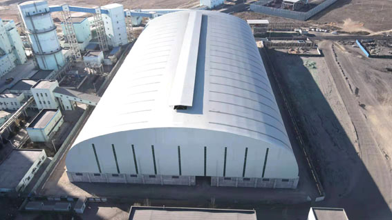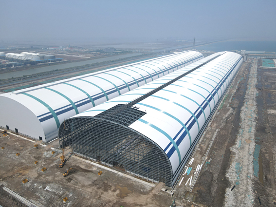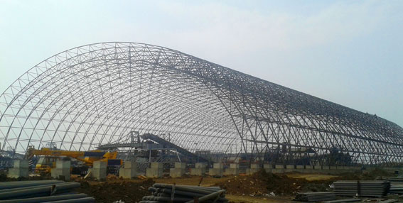 具有桿系和殼體雙重受力的特點,提出了設計和分析時合理的結構形式、利用三心圓滿足儲料倉凈空的要求。利用仿真分析技術設計、控制了含鋼量。安裝:采用塔架支撐、逆安裝、單邊起步等工藝完成起步單元做成穩定結構承受施工荷載的高空散裝施工工藝,保證了柱面網殼在安裝過程中的質量和安全。